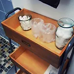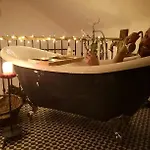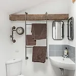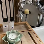 Hier gibt es einen Patio und eine Sitzecke, sowie können Gäste einen Ausblick auf den Garten genießen. Der Innenraum ist mit einem Sofa ausgestattet und verfügt über einen Steinkamin. Zur Ausstattung des Badezimmers gehören auch eine begehbare Dusche, eine getrennte Toilette und eine Badewanne. Ein Haartrockner, Morgenmäntel und Badelaken werden auch angeboten.